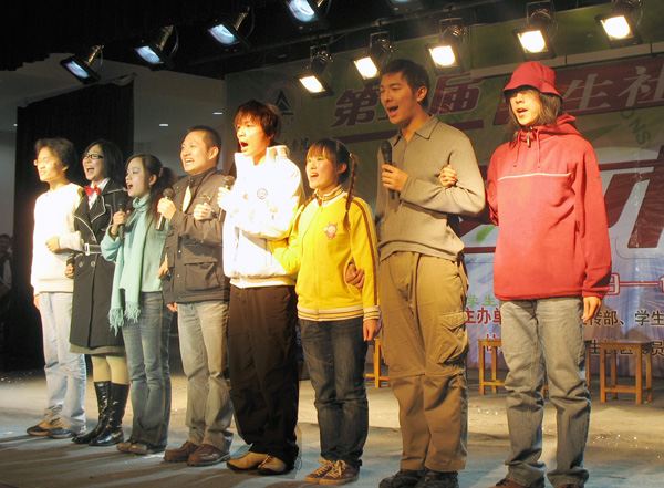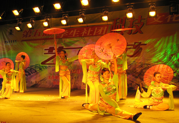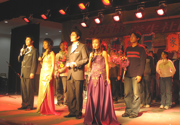 11月20日晚,经过精心准备,我校第五届学生社团科技文化艺术节以一场精彩纷呈的文艺晚会拉开帷幕。 吉他协会、心青手语社等学生社团纷纷献出各自的拿手绝活,在开幕式晚会上赢得了同学们一阵又一阵的掌声。跆拳道协会把会员们平日苦练的功夫搬上了舞台,准确、有力的踢腿,配有诙谐音乐的组合拳,一一展示了会员们的日常训练成果。随着短短一曲《渔舟唱晚》演奏完,一幅水墨、两张条幅已经写就,透露了西子书画社会员的实力。子午话剧社、口译协会、戏曲协会以及来自成教学院和生命科学学院的二级学院社团也都展示了各自社团活动的精品成果。整场晚会在学生社团联合会、各学生社团负责人的合唱《相亲相爱》中达到高潮,正如歌词所说的,我校的学生社团就象相亲相爱的一家人,在量院的大家庭里成长,不仅绘就了量院学子色彩炫丽的校园文化生活,也使我们的学生社团越来越发展壮大。 本届学生社团科技文化艺术节以“青春之旅,精彩无限”为主线,除了开幕式晚会的“起点站”和“十佳歌手”总决赛暨闭幕式的“终点站”,在11月12日至12月9日艺术节期间,还设置了包含各类活动的科技、文化、艺术、加油、竞技等五个站点,在各个不同的站点,同学们可以参与、感受到不同的校园文化生活,在“科技站”里,既有第二届大学生创业计划竞赛、“质量周”知识竞赛、管理案例分析大赛、电子竞技大赛等学生科技竞赛,也有“挑战杯”全国决赛观摩、浙江省第二届大学生机械设计大赛获奖作品展示、创业计划大赛文本写作培训等学习活动;“文化站”则包含了英语晚会、校园环保行、模拟法庭、第二届下沙英语表演大赛、特色寝室评比大赛等不同的校园文化生活;“艺术站”里展示的是卡通片连播展、创意百分SHOW、秋之韵戏曲晚会、人生AB剧话剧专场等大学生艺术生活;“加油站”里有心理健康宣传周、下沙高教园区大学生社会实践优秀成果报告会增长各类知识的活动;“迎新杯”乒乓球个人赛、篮球嘉年华、棋类大赛、台球大赛等体育活动都可以在“竞技站”里找到。四十项学生社团科技文化艺术活动将把11月到12月的量院生活装点得更为丰富而充实。