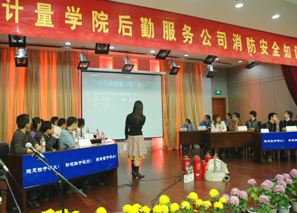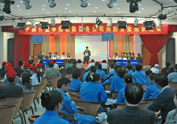 为了增强广大后勤员工的消防安全意识,使“人人讲安全,处处有安全,事事保安全”的理念深入人心,11月8日晚,中国我院学院党委宣传部、保卫处、后勤产业管理处和后勤服务公司在方圆楼多功能厅联合举办了一场精彩的“119”消防安全知识竞赛。杭州市经济技术开发区消防大队负责人,浙江省公安厅《平安时报》宣传部领导应邀参加了活动并作了讲话。 本次消防安全知识竞赛内容丰富,题型多样。内容不仅包含消防安全法律法规、消防安全教育等知识,还包括燃烧常识和灭火的基本方法;题型分个人必答题、抢答题、风险题和加试题。整场活动按题型的不同分为五个环节。参赛队员分餐饮、公寓、物业等六个小组参加比赛,按照比赛规则,每个小组有3名选手,其中至少有一名义务消防员,各组都有各自的拉拉队助威呐喊,场上的气氛异常浓烈。精心准备的各队在前四轮紧张的角逐中总分不相上下,经过加试题的争战,餐饮、商贸和物业三支代表队最终胜出,分别夺得第一名、第二名、第三名。到场的领导和嘉宾为获胜的代表队颁奖。 紧张而有序的消防安全知识竞赛在杭州市经济技术开发区消防大队严班长仔细、生动的灭火器使用演示中落下了帏幕。短短一个半小时的知识竞赛,使大家从思想上重视消防安全,强化意识,并把“人人讲安全,处处有安全,事事保安全”的消防理念贯彻到实际工作中,为建设平安校园打下坚实的思想基础。