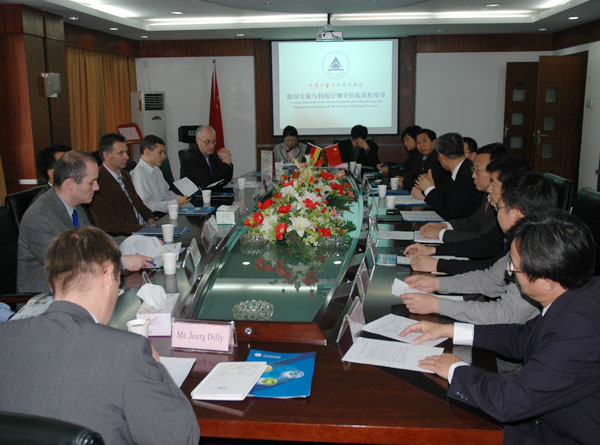 11月4日,德国亚琛工业大学机床和生产技术研究所(WZL)和弗朗霍夫研究院生产技术研究所(IPT)代表团一行10人由省科技厅对外科技合作处处长董克军等陪同来我校访问。吕进副校长出席座谈会并介绍学校情况。科技处处长陈乐、我院技术工程学院院长李东升、机电工程学院副院长徐向??,机电工程学院李青教授、信息工程学院董前民教授以及国际交流及合作处副处长吴宏宽参加了会议。 吕进副校长代表学校向德国亚琛工业大学机床和生产技术研究所(WZL)和弗朗霍夫研究院生产技术研究所(IPT)代表团的到来表示热烈的欢迎,随后他利用多媒体向客人介绍了我校的建设和发展情况并重点介绍了学科建设情况和科研成果。 座谈会上,双方就研究人员互访和培训、研发基地的建立以及在相关领域加强合作等方面进行了交流。代表团团长亚琛工业大学机床和生产技术研究所(WZL)副所长罗伯特•施米特教授指出,两校之间在我院测试和质量管理方面进行合作的领域广泛,可以先选派优秀教师来学校为学生授课,迈出双方合作的第一步。 吕进副校长说,非常欣赏德国大学积极与企业结合的精神,在这方面我们也在探索和尝试,浙江省磁性材料试验基地的建立是我校与企业合作的成功范例。两校之间具有广泛的合作领域,但研究人员的互访、互培以及研发基地的建立需要有一个互相了解和交流的过程,希望能从教师的访问和培训做起,进一步拓宽合作的途径,使两校之间在加强合作方面走的更远。 座谈会结束后,双方合影留念。吕进副校长陪同客人参观了我院技术工程学院实验室。 作为德国一流的机械制造与我院测试技术研究机构,德国亚琛工业大学机床和生产技术研究所(WZL)代表着生产技术的创新。该所大约600名雇员显示了实验室涉猎领域的广泛性,这使得WZL成为欧洲相同领域内最大和最高产的大学科研机构之一。 该实验室从事针对产业需求的研究项目, 并为生产合理化提出切实可行的解决方案。作为一个大学科研机构,WZL同样以提供实践导向的教育为己任,为生产科技培养高素质的工程师。 德国弗朗霍夫研究院生产技术研究所(IPT)是欧洲最大的应用研究机构。弗朗霍夫研究所经营着大约80家研究机构,其中包括遍布德国40余位置的58家弗朗霍夫研究院,拥有大约12,500名卓越的科学家和工程师, 每年的研究预算超过10亿欧元。弗朗霍夫IPT的目标是通过实践导向的研究和开发工作,为现代制造业内的客户开发新的解决方案,并优化现有解决方案。 研究所直接将研发成果转移到客户公司中,这些客户来自各行各业?C,包括汽车业及其供应商, 尤其是设备模具制造商, 航空和航天业以及精密机械、光学工学和机床制造商。 05年4月,以我校常务副校长方志刚为团长的代表团访问了弗朗霍夫研究院生产技术研究所(IPT)并达成合作意向。