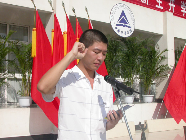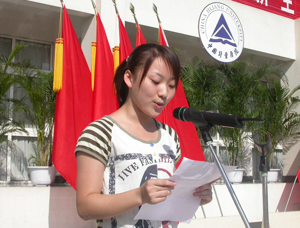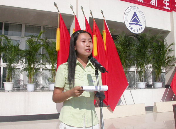 教师代表李青教授,老生代表李莲萍,新生代表管理学院夏梦分别在会上发言,法学院章挺带领全体新生在开学典礼上作了庄严的入学宣誓。