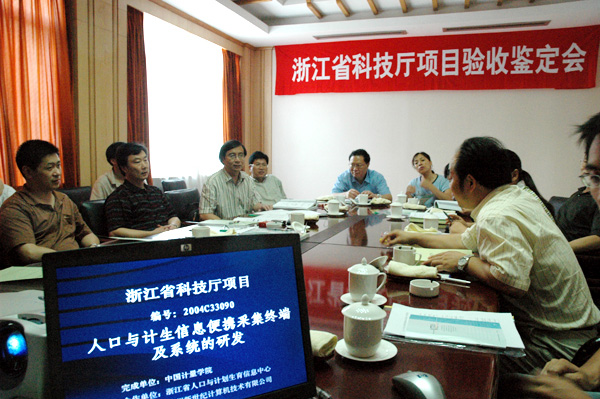 8月2日,浙江省科技厅在杭州市林泉山庄主持召开了由中国我院学院、省人口计生信息中心和杭州新世纪计算机技术有限公司共同承担的浙江省科技计划项目“人口与计生信息便携采集终端及系统的研发”鉴定会,该项目被认为是“在人口计生系统内填补了国内空白,处国内领先水平”。