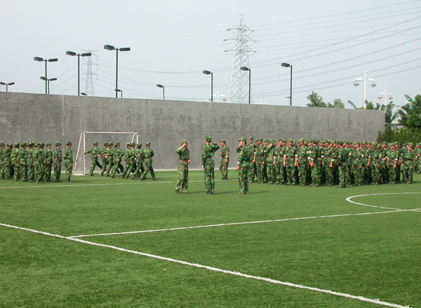 今年是抗日战争胜利60周年,也是全国学生军训工作开展20周年,在这个值得纪念的日子里,我校2004级学生的军训工作也全面展开。自25日军训动员大会召开以来,在军训团领导小组的统一安排下,各部门分工协调,各项工作有条不紊地进行。