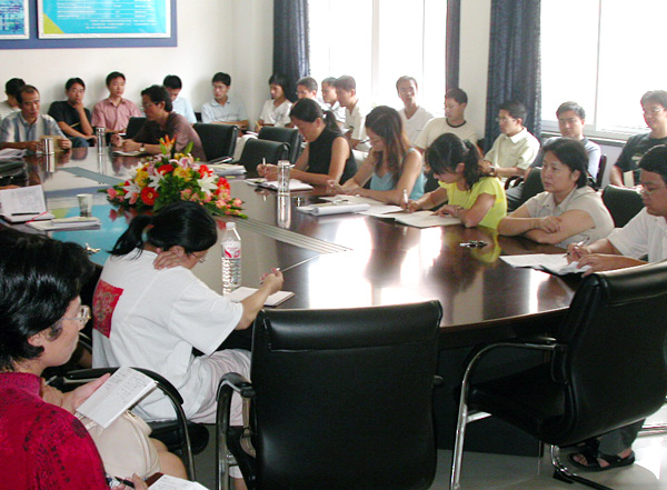 9月3日,是全体教职员工报到的日子,标志着紧张繁忙的新学期已经开始。走进校园,鲜花盛开,绿树成荫,彩旗飘扬,横幅高悬,拱门耸立,一片生机勃勃的繁荣景象。“增强紧迫感和责任感 为‘迎评保优’做贡献”的标语格外引人注目,它提醒着全校教职员工时刻不要忘记自己的使命和责任,人人支持评估,人人参与评估,人人关心评估,为迎评促建工作出力鼓劲。 党委宣传部的采访人员走访了各二级学院和机关有关部门,到处是紧张忙碌的场面,部门会议、全体教师会议、报告会、研究课题、为迎新做准备、为教学做准备等各项工作都在有条不紊地进行着,报到第一天就这样紧张忙碌,看起来大家都已意识到责任重大,不能有丝毫的懈怠和放松。 2006年的教育部评估转瞬即至,保持共产党员先进性教育深入开展,学科建设迫在眉睫,学校上水平上层次任重道远,每一项工作都异常艰巨,但愿全体教职员工能意识到我们的境地,学校发展如同“逆水行舟,不进则退”,在高等教育竞争如此激烈的今天,我们只能上不能退,要居安思危,把所有压力转换为动力,共同为学校的发展而努力。