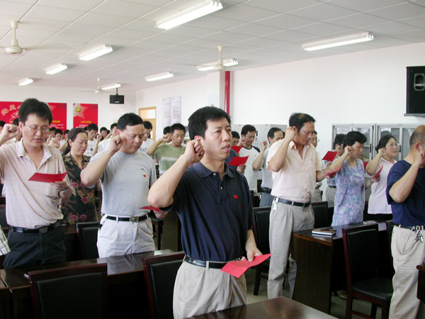 7月1日下午2点,学校纪念“七一”建党八十四周年入党宣誓仪式在校“党员之家”隆重举行。校党委副书记、纪委书记于永明,党委委员、党办校办主任陶伟华,党群部门负责人,各二级学院党总支书记、副书记等出席大会。机电工程学院新发展学生党员代表参加了宣誓仪式。宣誓仪式由校党委组织部部长郝敬习主持。 伴随着庄严的国际歌声,宣誓大会拉开了帷幕。由郝敬习领誓,新党员入党宣誓,老党员重温入党誓词,现场全体党员面对鲜红的党旗郑重宣誓。 机电工程学院学生党员代表王珊珊同学在入党宣誓仪式上代表全体新发展党员作了发言,她表示要牢记今天的誓言,通过不断地自我学习、自我提高、自我完善,提高政治思想素质,在今后的工作、学习和生活中,以党员的标准严格要求自己,真正起到先锋模范作用。 校党委组织部部长郝敬习在入党宣誓仪式上讲话。她指出,在中国共产党84年光辉历程中,有56年执政实践,经历了各种考验,中国共产党能走到今天,是历史的选择、人民的选择。我们党之所以能够团结人民战胜各种困难和挑战,不断取得革命、建设和改革的伟大胜利,最根本的,就在于我们党具有与时俱进的理论和实践品质,在于始终保持马克思主义政党的先进性。她希望在学校处于改革发展关键时期的今天,全体学生和教师党员在学校党委的坚强领导下,能勇担时代重任。在学校即将开展保持共产党员先进性教育活动之际,她号召每位共产党员永不辜负师生员工重托,保持共产党员先进性,始终走在时代前列。团结一致、奋发进取,共同开创学校美好明天。 同天,信息工程学院、人文社科学院等二级学院也纷纷举行了“七一”入党宣誓仪式。大家在党旗下庄严宣誓,用响亮的誓言共同庆祝中国共产党84岁生日。
