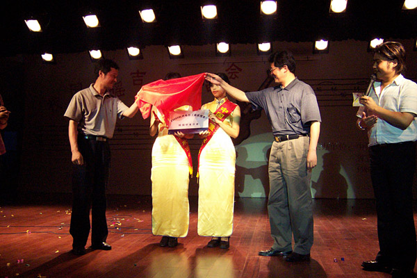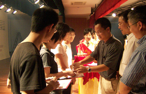 6月10日晚,我校学生活动中心灯火通明,校党委副书记徐涌金、杭州电台新闻综合频率总监吴洁、浙江省音乐家协会吉他专业委员会副会长张帆等与学校党委宣传部、学生处、团委、保卫处、后勤服务公司及各二级学院的负责人一起出席了多功能厅启用仪式。省音乐家协会吉他专业委员会中国我院学院吉他培训基地、FM89杭州电台《音乐搜索》校园听友沙龙也同时揭牌。活动由FM89杭州电台新闻综合频率《音乐搜索》主持人含放、陈立与校广播台潘蓓蓓、李晨共同主持。启用仪式后,三百余名师生在新落成的多功能厅欣赏了一场优美的吉他演唱会。 徐涌金副书记为学生活动中心多功能厅的正式启用揭牌并讲话。他说,学生活动中心多功能厅的正式启用标志着我校学生活动中心建设取得了实质性的进展,也是我校校园文化生活中的一件喜事。多功能厅是我校学生活动中心的重要组成部分,是学生活动中心建设投资最大、功能最齐全的场馆,是校园科技文化艺术活动的重要场所。多功能厅的正式启用,对于提升学生活动中心品位、完善学生活动中心的功能、加快学生活动中心的建设具有积极的作用。在表示祝贺的同时,他还就加强学生活动中心建设提出了三点要求:一要进一步明确学生活动中心的建设目标,要把学生活动中心建设成为“思想政治教育的阵地,综合素质培训的基地,校内第二课堂的平台,对外合作交流的窗口”。二要进一步明晰学生活动中心的功能定位,可以根据实际需要在学生活动中心设置“科技天地”、“文艺殿堂”、“英语世界”、“影视之窗”、“社团之家”等功能区块。三要进一步完善学生活动中心的管理运行机制,要建立、健全、完善学生活动中心的管理制度,充分发挥大学生自我教育、自我管理、自我服务的作用,充分挖掘学生创新潜能,致力于有效推进学生自主管理,使学生活动中心真正成为大学生自主管理的试验田、校园高雅活动的集散地、校园文化建设的桥头堡、校内学生社会实践的基地,从而积极推进学生活动中心和学生第二课堂活动步入良性动作的轨道。 我校大学生活动中心的建成,为广大学生提供了6000多平方米的活动场地,也让这里逐渐成为了校园文化生活的一个热点场所:校学生会、青年志愿者总队、校广播台……各个校级学生组织在这里开展活动,为同学们提供服务;吉他协会、戏曲协会、英语协会、子午话剧社等五星级社团、四星级社团都相继获得了排练、活动的专用教室,活动中心里常常萦绕着优美的音乐和同学们欢乐的笑声。每个周末,学生活动中心的活动室里都会有校园歌手自弹自唱,动听的歌声常常让人不由自主地停住脚步。这里就是我校和浙江省音乐家协会吉他专业委员会共建的吉他培训基地。在这个培训基地里,由浙江省音乐家协会吉他专业委员会的老师定期对我校的吉他协会和吉他爱好者进行指导和培训,也为大学城的吉他爱好者们提供了一个交流的平台。同时,随着杭州电台《音乐搜索》栏目校园听友沙龙在我校的成立,今后《音乐搜索》将有许多的节目直接从这里进行录播,从这里传播出去的优美乐声将会传递到杭州的各个角落。出席活动的领导为吉他培训基地和听友沙龙揭牌,使两者成为了学生活动中心 对外合作交流的平台。 当晚的活动中还对机电工程学院分团委 、外国语学院团总支及04国贸1团支部等获得2004年度“五•四”红旗分团委(团总支)和“五•四”红旗团支部荣誉称号的代表进行了表彰,分别颁发了奖杯和证书。 来自我校、浙江工业大学、杭州电子科技大学等的吉他爱好者在晚会上表演了许多原创校园民谣,动听的歌声与琴声相和,在多功能厅里萦绕不绝,也让现场的观众们大饱了耳福。当吉他培训基地指导老师、省音乐家协会吉他专业委员会副会长张帆来到台上拨响琴弦,台下更是响起了如雷的掌声,娴熟的技巧、深情的歌声,不仅打动了听众的心,也让更多的人爱上了吉他这门艺术。学生活动中心多功能厅启用仪式暨校园民谣吉他演唱会在热烈的掌声中落下了帷幕。我们相信,随着学生活动中心多功能厅的投入使用,将能够更好地为同学提供课外科技文化活动的空间和场所,促进同学的全面发展。