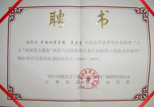 5月31日至6月2日,国家哲学社会科学“十五”规划重点课题高级研讨会在北京召开,来自全国40余所高校的代表参加了会议。我校高教研究所所长李丹青老师赴京参加了此次会议。教育部教育发展研究中心专家委员会副主任、北京大学蔡克勇教授为与会代表作了题为《转轨时期大学经费投入研究的几个问题》和《申报跟踪研究课题要求及方式方法》的报告,教育部教育发展研究中心高教室主任马陆亭作了《高等教育发展与改革》的报告。会议对于申报跟踪研究课题的项目进行了评审、立项和颁牌的工作。 经国家哲学社会科学重点项目“政府与高校新型关系下高校投入制度改革研究”跟踪研究管理办公室批准,我校李丹青、于永明老师申报承担的“地方性本科院校提升质量和水平的制度保障研究”获准通过、立项(课题编号AIA010027-CEI0518),被列为国家哲学社会科学“十五”规划重点课题“政府与高校新型关系下高校投入制度改革研究”(课题编号AIA010027)的子课题,我校被列为国家哲学社会科学“十五”规划重点课题跟踪研究试验基地。李丹青老师被聘为我校跟踪研究试验基地调研组组长,于永明副书记被聘为我校跟踪研究试验基地调研组执行组长。