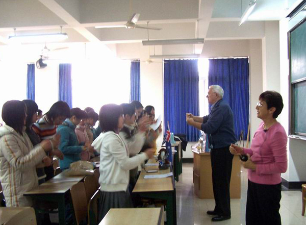 3月10日下午在翔宇楼204教室,暂别了一个寒假的English Corner以它崭新的面貌又与大家见面了。与以往不同的是,本期活动是由外国语学院两位澳籍新外教——Don & Fran主持。在此次英语角活动中,两位外教首先教大家唱了一首澳大利亚民歌——Give Me A Home Among The Gumtrees。外教夫妇配以丰富的肢体动作,带领同学们和着音乐边唱边跳,使得现场的气氛也更加活跃起来。此后,Don为同学们展示了一些精美的澳洲风光图片,介绍了具有当地特色的动植物和风景名胜,她还针对同学们的提问,介绍了澳大利亚的风土文化,气候和节日等等。到场的英语爱好者们被他们诙谐的语言,趣味横生的小故事,丰富的肢体动作所吸引,沉浸在English Corner这个别样的英语学习环境中。