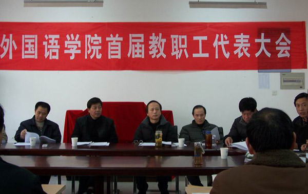 1月12日下午,外国语学院在格致中楼307会议室隆重召开首届教代会。学院各系部教代会代表和学校各分工会主席近60人参加了会议。校工会主席、副校长张硕年,副校长吕进等学校领导应邀出席了会议。会议由外国语学院分工会主席高铭主持。 大会在庄严的国歌声中拉开序幕。张硕年在会上致辞,他简要介绍了我校近几年的民主建设与发展,充分肯定了外国语学院一年来所取得的成绩,并预祝学院教代会圆满成功。吕进在会上讲话,他充分肯定了该学院一年来的工作并提出了殷切希望。 代表们认真听取了外国语学院院长黄天海作的题为《紧抓机遇 锐意进取 为外国语学院全面发展奠定坚实基础》”的工作报告。报告全面总结了2004年学院教学、科研、专业建设等各方面的工作并提出了学院的五年规划。报告突出了紧抓机遇,锐意进取,全面发展的主题,充分体现了外国语学院激扬奋发、阔步前进的创业精神。 会上,代表们以高度负责的态度对工作报告和津贴分配办法进行了讨论,各小组向大会递交了提案和建议,学院领导认真听取了代表们的意见。最后,大会以无记名投票的形式表决通过了工作报告和津贴分配办法。