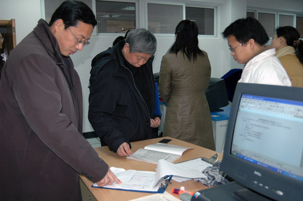 1月14日上午9点,教育部独立学院办学条件和教学工作状况检查专家组开始了实地考察工作。专家组在现代科技学院领导及各职能部门、系部负责人的陪同下考察了现代科技学院物理实验室、电工电子实验室、EDA机房、语音室及计算中心,并参观图书馆、多媒体教室、工程训练中心等地。随后,专家组还前往学生生活区考察了食堂,并对学生宿舍进行了抽查。