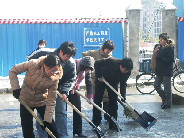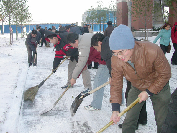 近日来杭城普降大雪,气温骤然下降。为了保证全校师生正常的学习生活秩序,机关党总支于12月31日中午组织全体党员干部扫雪除冰。各教学单位许多教职工也纷纷加入了扫雪队伍。尽管天气寒冷,风急路滑,但广大党员干部热情高涨,干劲十足,为寒冬中的校园带来了融融暖意。