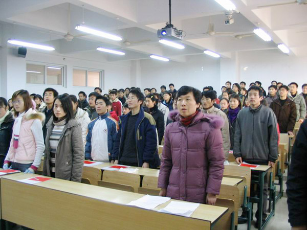 随着教室里庄严的《国际歌》奏起,仪式正式开始。在学生党员苏沛然同学的领誓下,全体新党员进行了宣誓,铿锵有力的誓词,浑厚响亮的声音,表达了共产党人坚定的信念和必胜的决心。