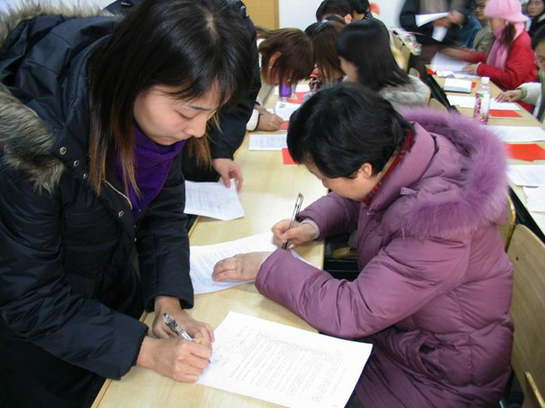 全体学生新党员在《我院技术工程学院学生党员责任书》上郑重地签下了自己的名字。