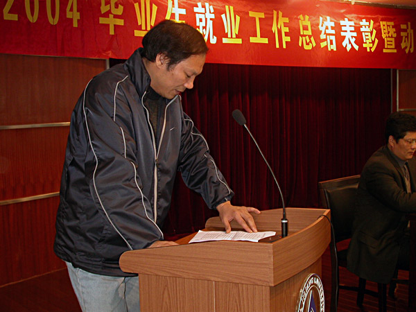 2004年毕业生就业工作先进集体代表信息工程学院党总支书记付洪健、先进个人代表机电工程学院梁嘉麟教授在大会上做了交流发言,谈了各自在毕业生就业工作中的经验和体会。