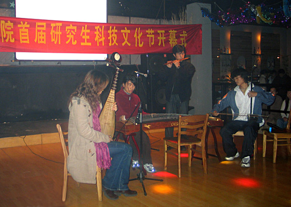 融合了知性的思想、感性的活力、悟性的理念于一体的我校首届研究生科技文化节于12月3日拉开帷幕。这是我校第一次举办以弘扬科技创新精神和营造浓厚人文氛围为主旨的研究生科技文化节。此次活动由校研究生学生会主办,得到了校团委、研究生部等有关部门的关心和支持。 校党委副书记于永明、副校长吕进等学校领导应邀出席了开幕式。研究生部主任李肖伟、校团委书记巢岺、学校各分团委书记及我校全体研究生和校学生会代表参加了开幕式。开幕式首先由吕进副校长致开幕词。他代表学校欢迎在杭各高校研究生学生会代表的到来,感谢他们对本次活动的支持,并详细介绍了我校研究生教育的情况。接着,浙江大学博士生演讲团副团长代表在杭各高校研究生会致贺词。随后,开幕式在04级研究生的合唱《相亲相爱》中开始了表演单元,从民乐表演《彩云追月》到吉他弹唱《外面的世界》,从Byond的《不再犹豫》到深情的《真心英雄》,从动感的Hip-Hop到柔美的舞蹈《江南》,每一个节目都经过精心编排,得到了观众的好评。 在今后近一个月的时间里,计划将开展丰富多彩的科技文化、体育竞技等活动,力求将“活力•人文•知性”的主题渗透到本次科技文化节的每一个细节。
