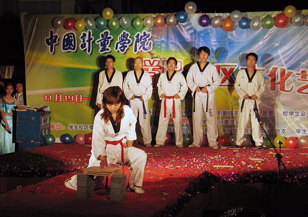 11月20日,我校首届社区文化艺术节正式拉开序幕。当晚,在社区新食堂前举行了精彩的开幕式晚会,吸引了近两千名观众。有关职能部门和二级学院负责人、入住公寓的辅导员老师和兄弟院校学生会代表参加了开幕式。副校长侯宇、校长助理徐涌金等学校领导出席了开幕式。 开幕式晚会上表演的节目是我校师生业余生活的集中展现。形象队的时装秀充满时尚气息;器乐队合奏的《彩云追月》悠扬动听;健美操队的男子竞技操富有活力;而学生社团的同学们表演的踢踏舞、跆拳道等也表现了量院学子在课余生活中练就的各种特长。学生社区委员会的同学们精心编排了合唱《梦想天堂》,用歌声表达了积极参与社区建设,将生活社区建得更加美好的愿望。来自后勤服务公司的员工代表也在晚会上一展歌喉,让同学们见识了他们工作之外的风采。开幕式上还举行了社区监控部助理聘任仪式,后勤服务公司总经理助理、宿管中心主任江颖华在仪式上讲话并给受聘的学生颁发了聘书。 此次社区文化艺术节是由校党委宣传部、教务处、学生处、后勤服务公司、校团委、校学生会联合主办,学生社区委员会承办的一次学生社区大型文化艺术活动,既是对我校社区学生组织建成三年多来的工作,特别是社区文化建设方面的工作的一次集中展示,也是为今后在学生社区开展文化活动、建立社区文化建设的长效机制的一次有益尝试。本次社区文化艺术节是我校首届社区文化艺术节,除了开幕式晚会外,还有社区文明公民评比、文明寝室评比、“我最喜爱的阿姨”评比等评比活动;以及探讨如何加强社区建设的在杭高校学生社区建设研讨会、学生社区委员会与后勤服务公司“面对面”座谈会、体验食堂等活动。除此之外,为了进一步丰富同学们在学生社区的文化生活,校团委、学生社区委员会还在艺术节期间安排了吉他、话剧、戏曲等专场演出。文化艺术节还安排了社区文明主题辩论赛、寝室尼吉斯、三人篮球赛、公寓楼拔河比赛等丰富的文化、体育活动。通过这次社区文化艺术节的举办,希望能够有更多的人关心学生社区,在大家的共同努力下进一步推动学生社区的建设,促进具有量院特色的社区文化氛围的形成。