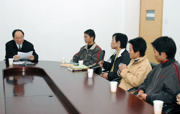 下午13:30,专家组组长、浙江工商大学副校长丁正中与来自我校02、03级光信息科学与技术专业的15名学生代表进行了座谈。座谈围绕光信息科学与技术专业的优势在哪里、如何进一步加强和改进该专业的建设等问题展开。学生代表们在会上积极发言,气氛活跃。大家一致认为学校和学院领导都非常重视光信息科学与技术专业的建设,不断加大投入,加强实验室建设,充实图书资料;该专业师资力量强大,有许多院士与教授为本科生授课、做专业讲座和学术讲座,教师们爱岗敬业、认真负责,教学效果明显;专业的课程设置比较合理,在教学中能将理论知识与实践能力结合起来。针对加强专业建设的问题,同学们提出了进一步加强和改进实验室设备与仪器、增加实验室开放时间、提高学生参于到教师科研项目与课题研究中去的参于度等建议。此外,丁正中还询问了学校教学管理、学风建设、教学反馈等方面的问题。