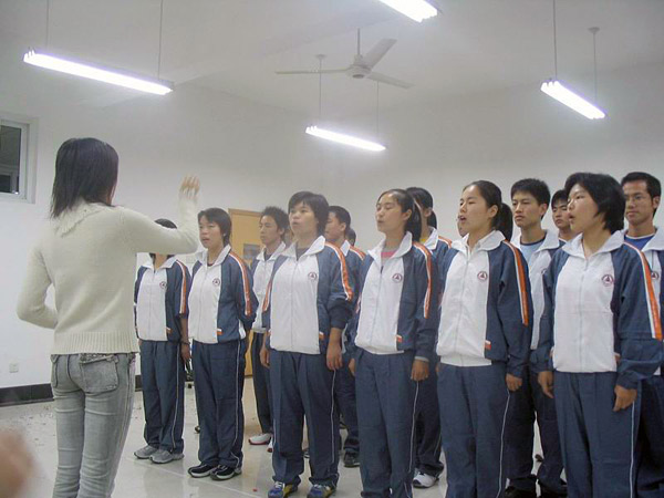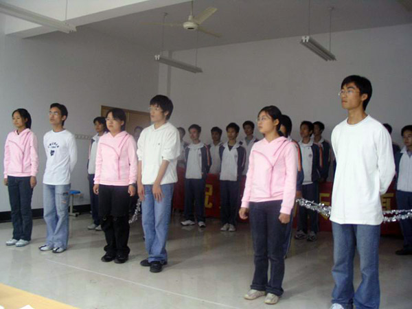 当天晚上,各个参赛班级早早地赶到比赛现场作最后的排练,纠正一些细节问题,不少班级在服装和队形等安排上作了充分准备,给人耳目一新的感觉。比赛过程中,参赛同学精神饱满,声音激昂宏亮,赢得了阵阵掌声。