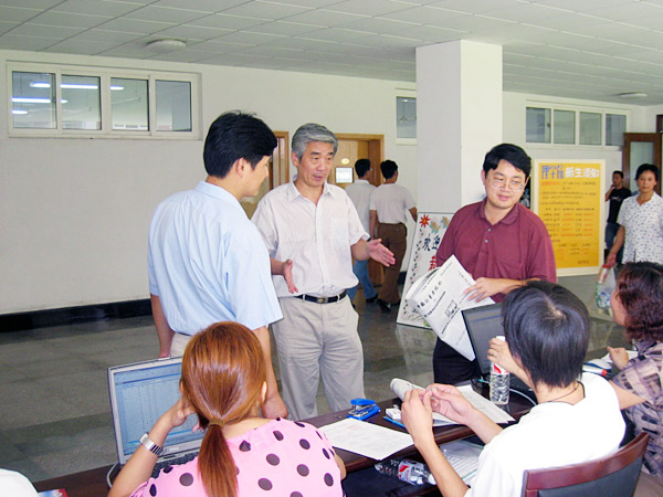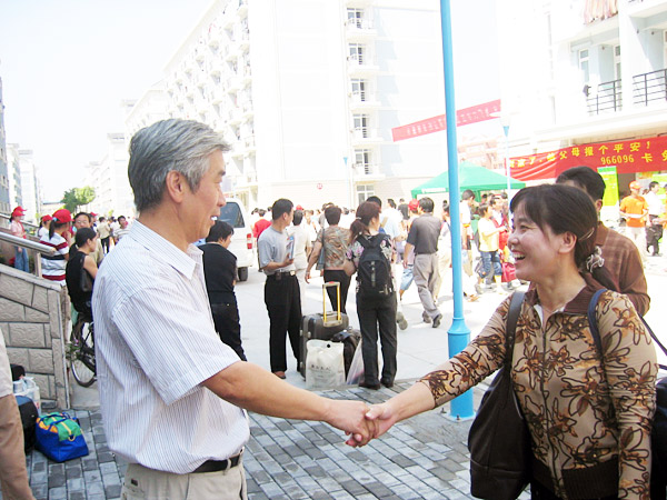 在全校各二级学院和有关职能部门通力协作,齐心协力做好迎新工作的同时,9月17日一大早,学校党政领导深入迎新现场对在迎新工作第一线的工作人员进行慰问,并到学生生活区与新生及家长进行了沟通和交流。