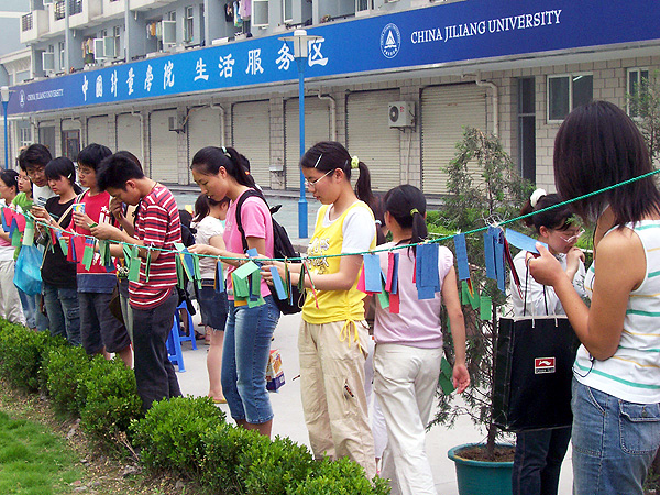 5月30日,外国语学院举办了英语节系列活动之“绿色幻影”——英语猜谜活动。此次活动在生活区门口举行,从中午11:30一直持续到下午4:00,形式新颖,内容丰富、全面。期间,天空飘起的毛毛细雨也丝毫阻挡不了同学们猜谜的浓厚兴趣。 该活动作为学习英语的另一种途径,将英语学习和日常生活相结合,极大地提高了同学们的积极性。参与活动的同学纷纷表示,这项活动既能玩又能学,对同学们的吸引力很大,并希望学院今后能多开展此类活动。