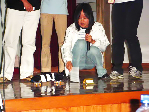 来自浙江大学、浙大城市学院、浙大宁波理工学院和中国我院学院等高校的20个设计小组共22件作品参加了决赛。上午举行的是最终设计方案的理论评审,下午是实物展示,各小组代表在规定的时间内讲解各自作品的设计思路并作实物演示。我校参加决赛的作品分别是由郑鹏远、孙健、高锡忠设计制作的“觅食的蚂蚁”、由张迪峰、黄晓燕、张铃集设计制作的“尺蠖”和由王挺、王金水、杜永福设计制作的“机器螃蟹”和“勘探蟋蟀”,他们的作品获得了评委和在场观众的一致好评。