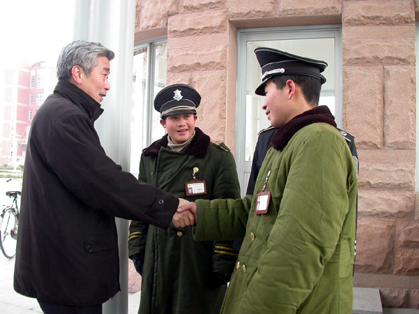 今天是农历大年三十,学校里洋溢着一派喜庆气氛。校党委书记姚盛德,副校长张硕年,校长助理徐涌金,党院办、宣传部、学生处、保卫处、基建处、后勤服务公司、团委等部门负责人以及各分院领导向坚守工作岗位的教职员工和留校过年的同学们进行了新春的慰问。姚盛德书记详细地询问了大家在学校的生活情况,并且希望大家把学校当作自己的家,在这个大家庭中度过一个欢乐祥和的春节。