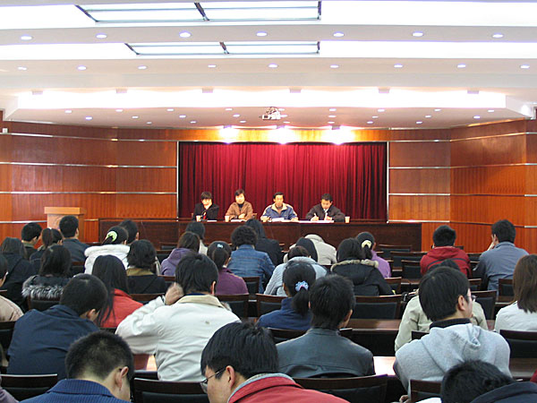 毕业设计是对大学生四年学习的总结和检验,也是其走出校园步入社会前的大练兵。会上,高岭梅强调了毕业设计期间出勤、请假及相关的管理制度;陈永良介绍了此次毕业设计的总体环节、进度及时间安排,并对广大同学提出了五点具体要求。在强调毕业设计的同时,会上该学院领导还对毕业生进行了就业动员,刘红波通报了前一阶段就业工作的情况,深入分析了当前的就业形势,鼓励广大毕业生努力提高自身能力,认清形势,抓住机遇。