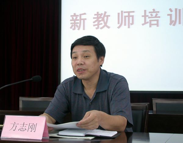党委副书记、常务副校长方志刚在第一次培训班上做了重要讲话。首先他就学校管理体制的变化、办学规模的扩大、发展空间的扩展、办学条件的改善、办学层次的提升、专业的拓宽、良好氛围的形成等几方面介绍了学校近三年来所发生的巨大变化以及今年学校的主要工作任务。最后他对新教师提出了几点希望和要求,他要求新教师要树立高尚的道德品质和崇高的精神境界,继续勤奋学习,认真研究教学规律,努力学习教育理论,不断提高科研能力,积极投身于学校的二次创业中去。
