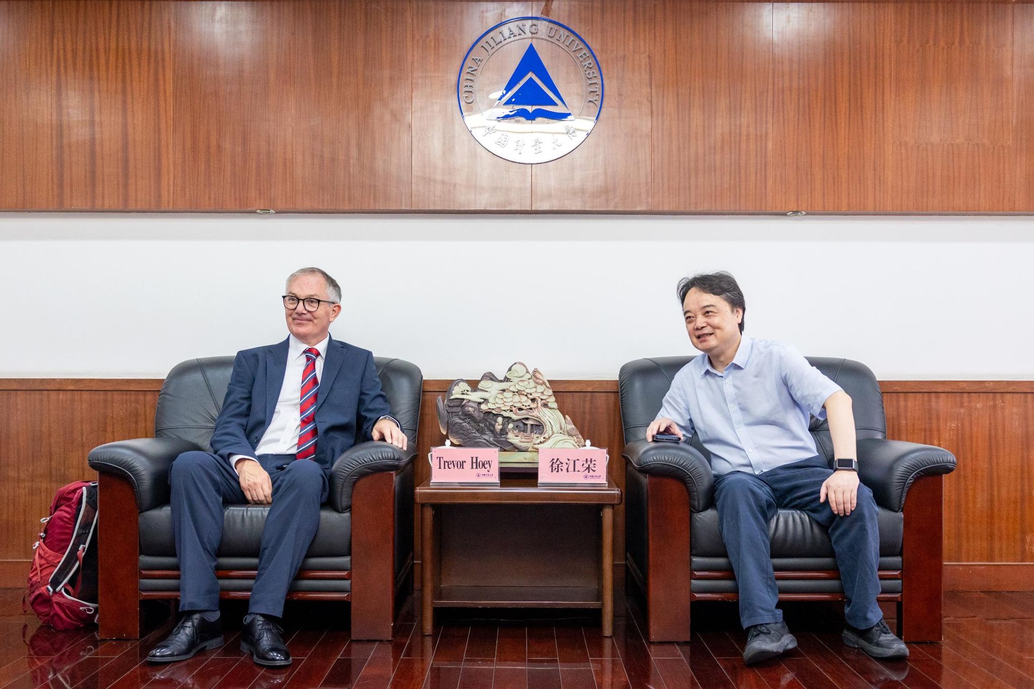 Trevor Hoey副校长感谢我校的热情接待,对双方已有合作基础和交流成果表示肯定。他表示,期待与我校携手推动新一轮合作发展,积极探索更多领域和形式的交流合作,并欢迎我校学生积极申报BUL与国家留学基金委联合设立的博士奖学金项目。他同时对即将赴英参加BUL夏令营的我院学子表达了关心与祝愿。