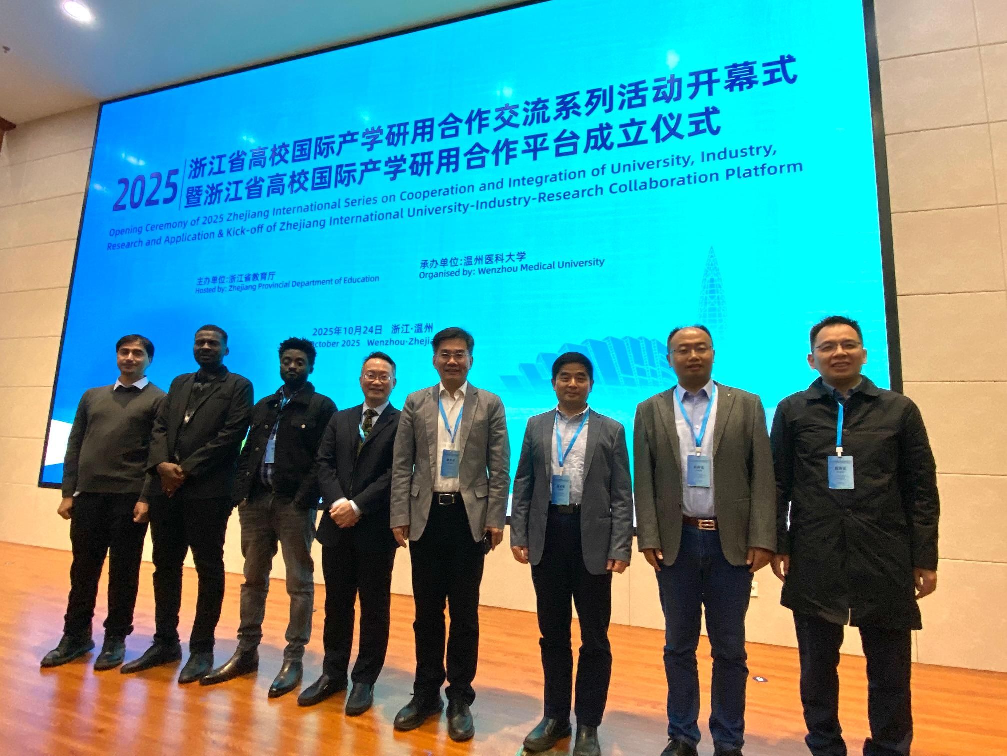 10月24日,2025年浙江省高校国际产学研用合作交流系列活动开幕式暨浙江省高校国际产学研用合作平台成立仪式在温州医科大学举行。本次活动由浙江省教育厅主办,省教育厅副厅长舒培冬出席会议并致辞。全省16所高校分管领导、有关部门和学院负责人,来自俄罗斯、加拿大、英国等多个国家的专家学者,省教育厅有关部门负责人近200人参加活动。