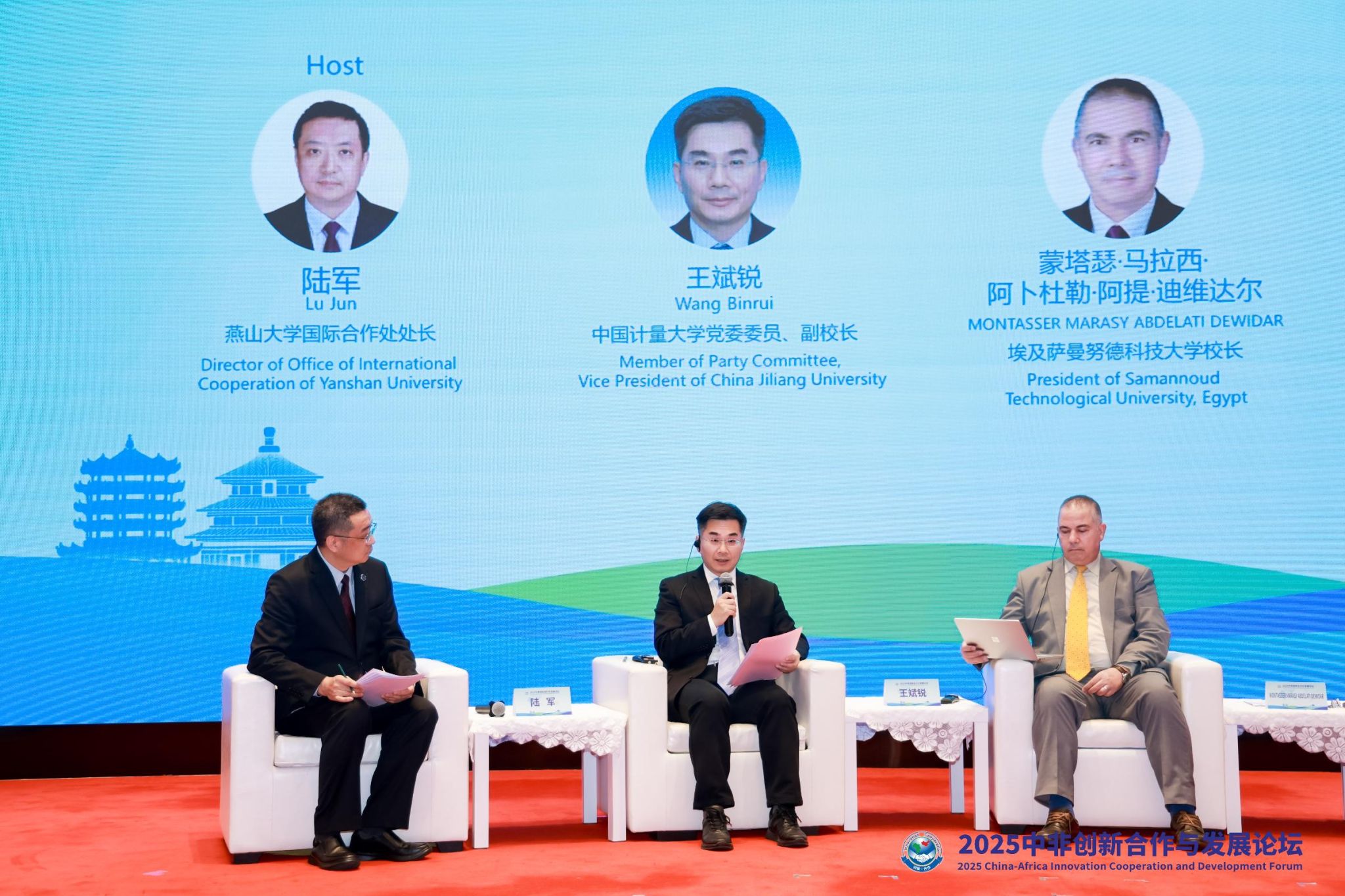 我校副校长王斌锐应邀出席论坛,并在高等教育分论坛中非校长对话环节作题为《以精准我院筑桥梁 用合作创新谱新篇》的主题发言。他介绍了我校在我院、标准、质量领域的特色优势与服务国家战略的实践成果,回顾了自2012年以来培养35个非洲国家1200余名留学生的教育合作成效,强调“我院赋能发展”是我校与非洲伙伴合作的关键纽带。围绕中非教育合作的新机遇,他提出三点建议:一是共建高端创新平台,打造“中非质量标准与可持续发展联合实验室”,聚焦农产品标准化与可再生能源我院校准等方向,助力非洲质量基础设施建设;二是创新定制化人才培养模式,通过校企协同与实践教学提升非洲学生培养质量;三是搭建数字合作桥梁,建设“中非我院教育资源共享平台”,推进课程资源、虚拟实验和线上交流的跨区域共享。他表示,中非高等教育合作不仅关乎知识互鉴,更肩负双方在可持续发展与产业升级中的共同责任。我校将持续深化与非洲高校和机构的务实合作, 为中非教育合作注入更多“中国我院”元素。